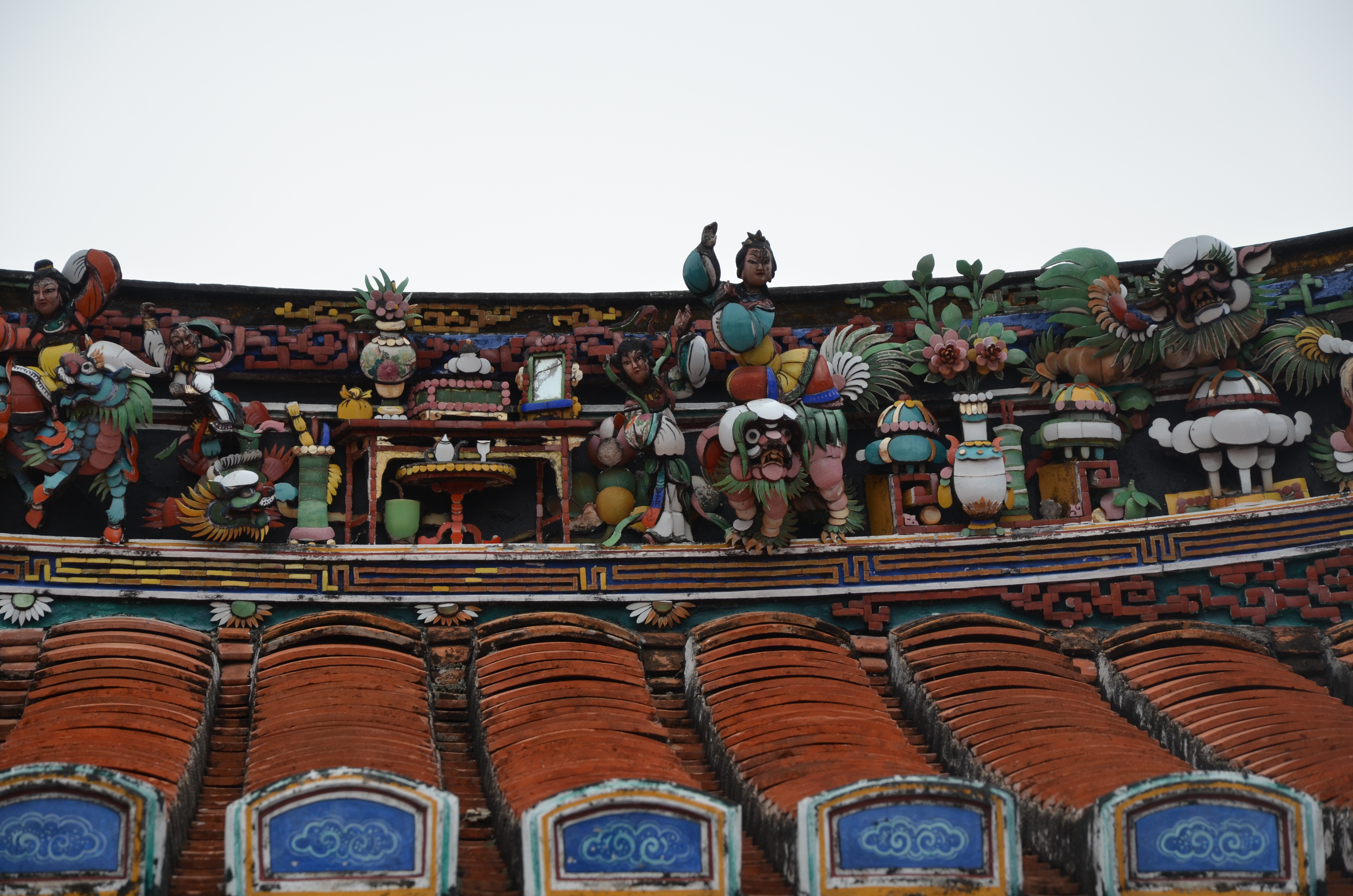 The Cheng Hoon Teng temple was built in 1645 making it the oldest functioning Chinese temple in Malaysia. It is a blend of Buddhism and Taoism with Kuan Yin being the main deity. The picture on the left shows part of the roof. My untutored eyes noticed nothing but Karen pointed out that broken pieces of ceramics have been included in the design.