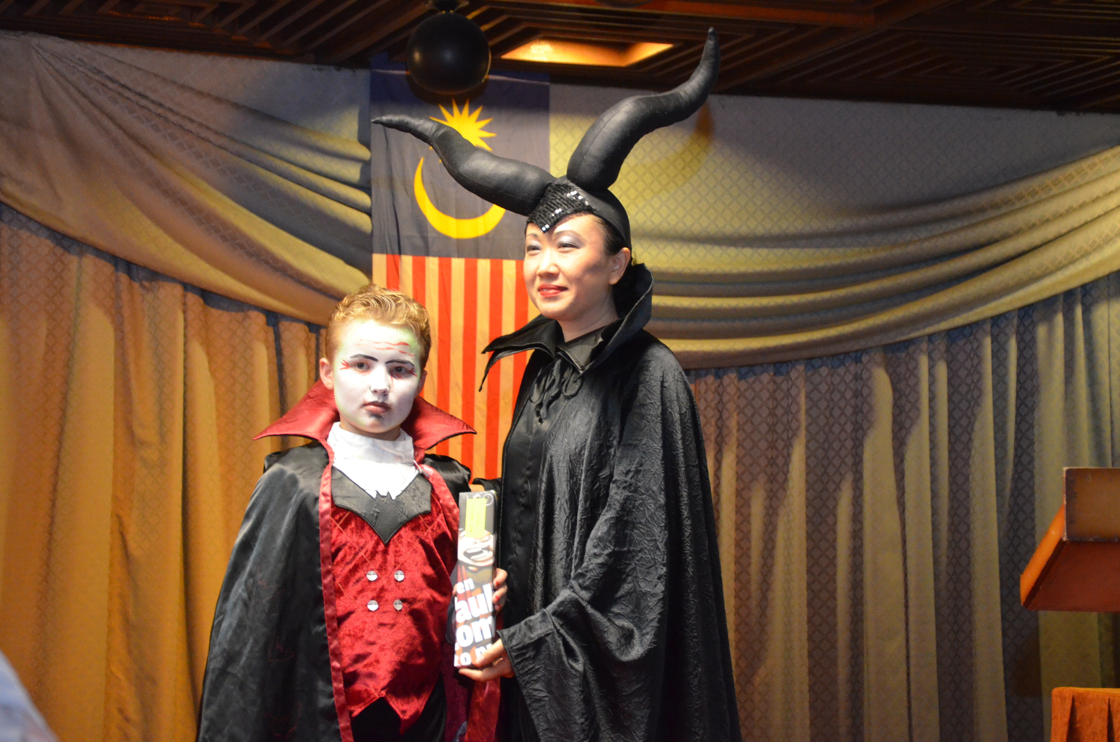 As darkness fell across the land, the ghouls sat down to enjoy a spicy dinner catered from Pakeeza. But unknown to them, the Chief Ghoul was checking them out to see if they met the high standards set for scariness. Edwin, the little count Dracula, got the nod as did Harith, the British officer from days gone by. The Pontianak Effa was lauded as the scariest female around. Approval was also given to Nisrin for the chilling photo booth backdrop and to Kinga for the grisly cake that the ghouls relished to the last bit.