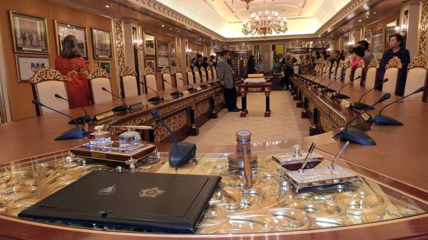 We were next led into the meeting room of the royal council. In this room, the royal council of advisers would deliberate and advise the Sultan on state matters. Next to this was the pardons room where the pardons board would meet and deliberate. In both of these rooms, banners listing the designations of the members were displayed. Next to the pardons room is where the Sultan’s personal office is located.
