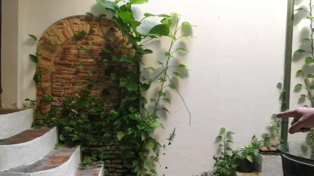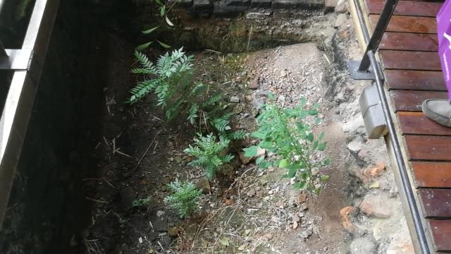 This wall collapsed and was stitched with concrete but the concrete was not covered up so that students can learn how to stitch a falling a wall.