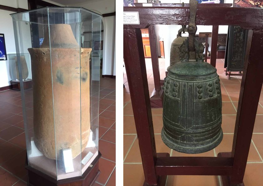 There are two galleries on the first level of the museum. One gallery displays numerous burial jars and urns in various sizes dating back 2,000 years while the other gallery has a collection of bronze bells and Vietnamese blue-and-white ceramics from the Champa period. It is believed that the Champa people founded Hoi An, which was originally called ‘Lam Ap Pho’ or Champa City. The Kingdom of Champa in Vietnam is considered the oldest in the Malay world dating to the 2nd century CE as the people practiced Malay culture and spoke Malayo-Polynesian language originally while the Cham language became the official language later. Hoi An was a very wealthy port between the 7th – 10th centuries CE, trading in spice and silk, exporting aloe and ivory.