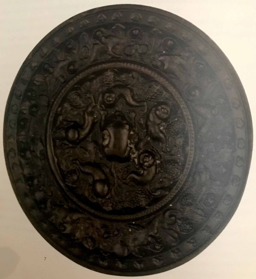 An interesting piece among the mirrors was one that was almost a thousand years old by the time the ship sailed; it dates from the Han era (206 BCE – 220 CE). Another antique piece dates from the Six Dynasties period (220–589 CE).