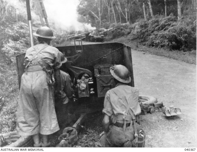 The caption to this photo in Wikipedia reads “Australian 2 pounder gun of 13th Battery, 4th Anti-Tank Regiment, firing on Japanese Type 95 Ha-Go light tanks of the 14th Tank Regiment on the Muar-Parit Sulong road on 18 January 1942. [1] Sergeant Charles Parsons and his crew were credited with destroying six of the nine tanks in this engagement.” (https://en.wikipedia.org/wiki/Battle_of_Muar).