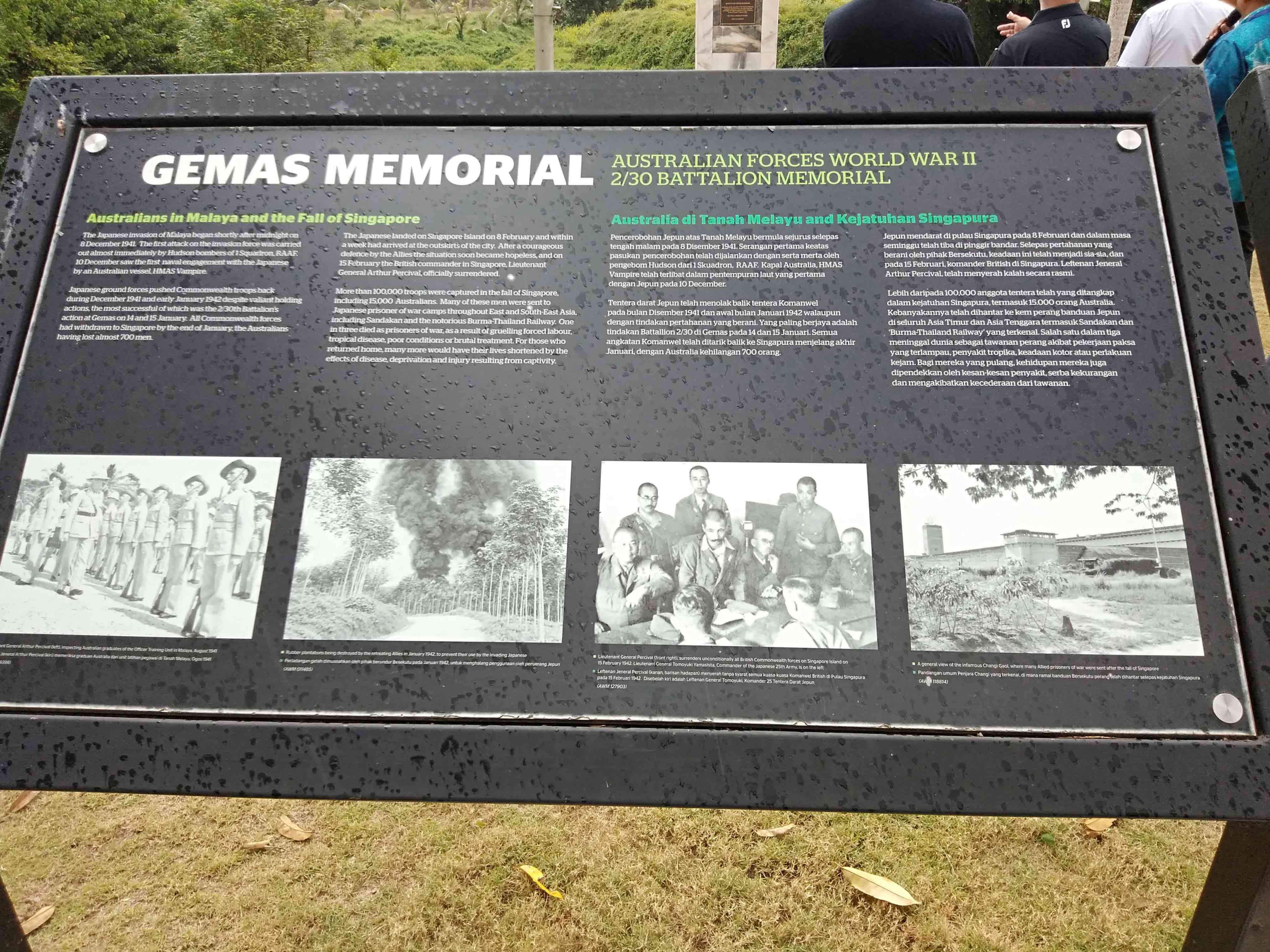 On the first day, we set off for Sungai Kelamah War Memorial in Gemencheh. This is along the old road south and close to Gemas. The Japanese, who had rumbled down at speed, arrived here on 14 January 1942. An Australian ambush party had already laid explosives under the bridge and awaited the Japanese. Bridges were routinely destroyed in war to stop or delay the advancing enemy forces.
