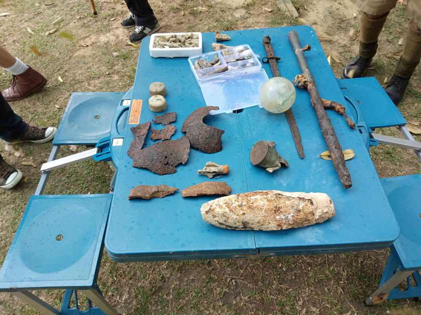 A local enthusiast, Rizal, showed us around dressed in the Commonwealth Forces uniform. This uniform was worn by Australian soldiers on the way to the Middle East and when they were diverted to Malaya, they fought in this uniform. Over time Rizal has collected many artefacts, all rusted with time.