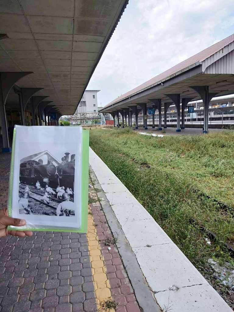 We proceeded to the Gemas Railway Station. We were shown a photo of Japanese troops crawling along the lines anticipating enemy attacks.