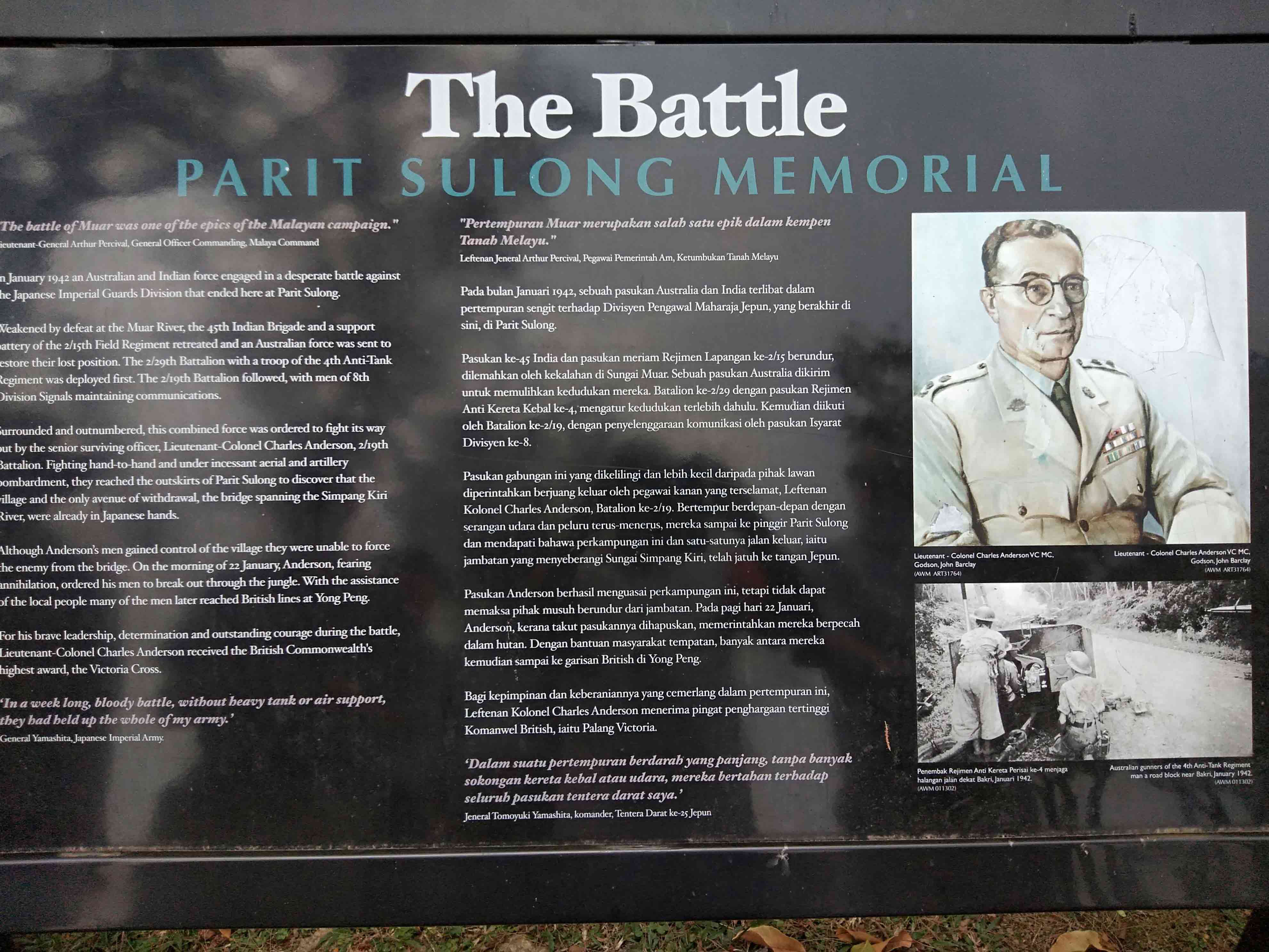 The route for the first day follows the start of the Australian forces’ involvement against the advancing Japanese army. As Australian Lieutenant General Gordon Bennet wrote in his book Why Singapore Fell, “Australians go in to bat”, a cricketing term. Their objective was to stop this advance and even drive the Japanese back, if not to delay the onslaught. The Japanese had been rapidly advancing down south largely on the west coast road with forces spread out on the fringes of the road, in the rubber estates and in the jungle, in fact everywhere in a broad sweep. They also had air cover in many places operating from occupied airports. Surprisingly, they also seized boats in Penang and Muar to get ahead and behind the British lines. The Forces, i.e. British Army, may have delayed the Japanese slightly and caused some losses, inflicted heavy damage, but they ultimately had to retreat into Singapore.