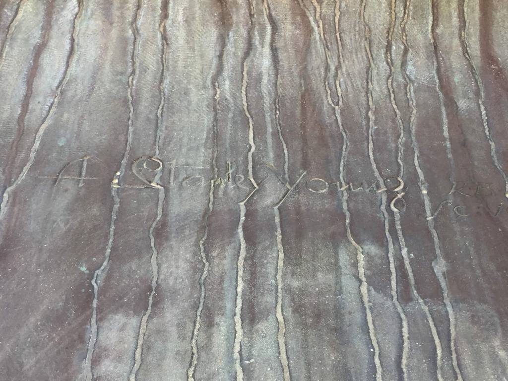 Right: Sculptor’s name behind the bust