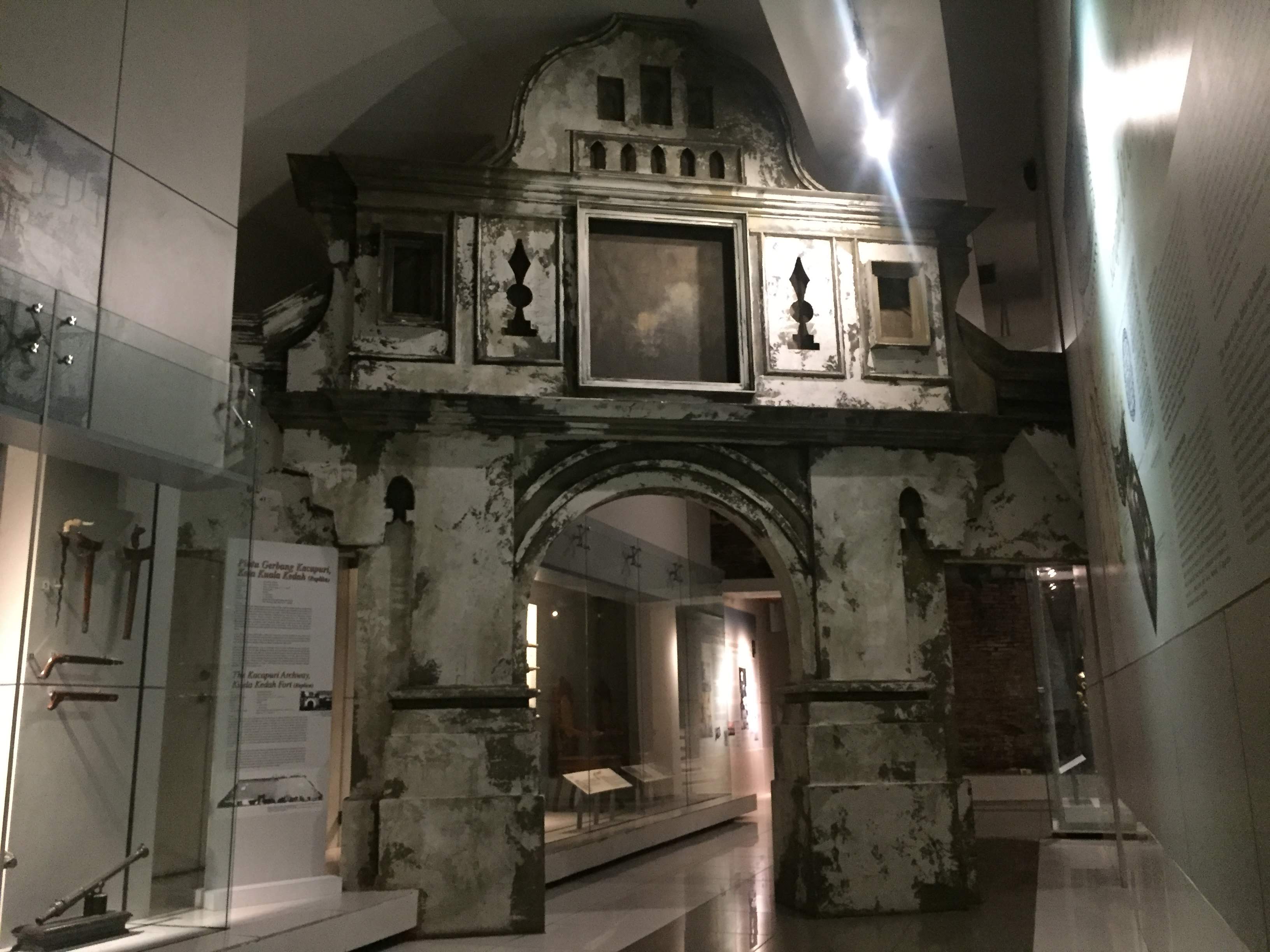 Before looking at the history of these two colonial monuments, it would be good to examine the white archway, which is a replica of Kacapuri Archway, one of two archways located at the Kuala Kedah Fort (the other archway is called the British Archway). Incidentally, there is also another replica (smaller in size) of the Kacapuri Archway at Gallery C in the main building.
