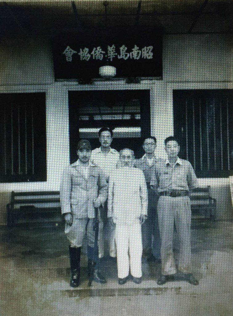 Right : Lim Boon Keng and Japanese officers in front of Syonan To OCA