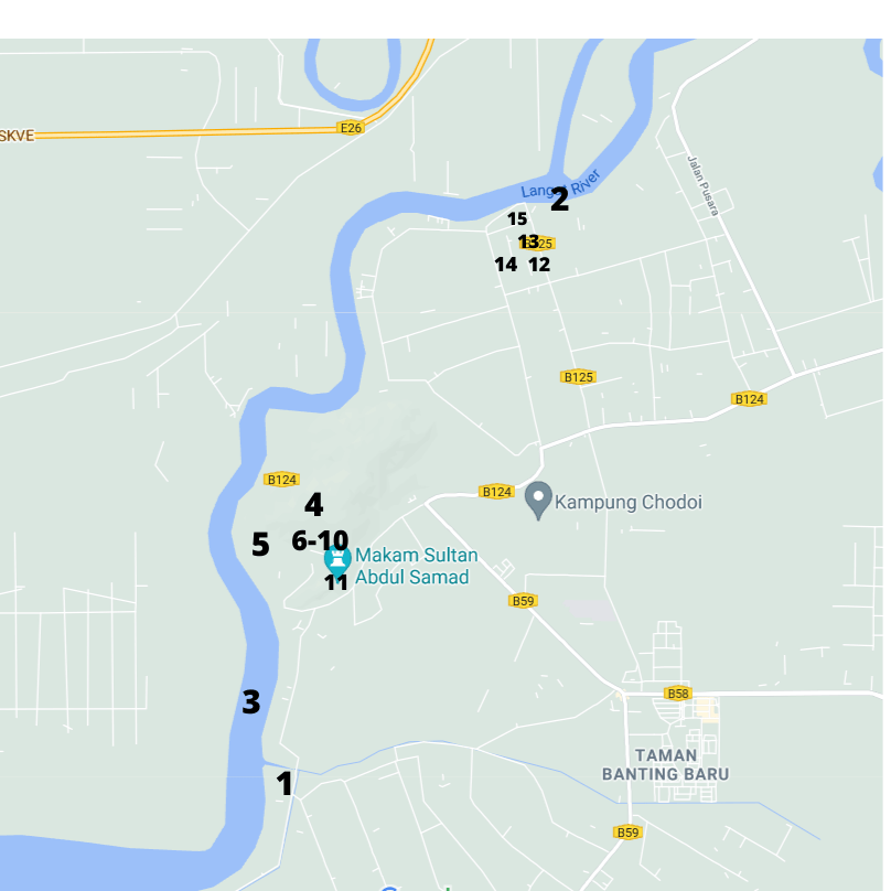Within walking distance from Jugra Palace is the site of what used to be (10) Long Puteri Palace, the official residence of Sultan Abdul Samad’s granddaughter, Raja Long Puteri. In the 1930’s, the place was inhabited by Raja Sakiah Raja Mustar. Today, both buildings have almost ‘disappeared’ except for some tall pillars that stood out at Jugra Palace and the remains of the stone staircase of fourteen steps at the latter. Visiting these two buildings would be quite impossible as both are now within private property.