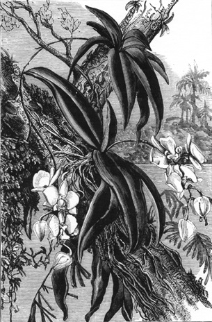 (Left) – Greater moth orchid / (Right) – Elk horn fern – The Golden Chersonese And The Way Thither. Photo source – Wikimedia Commons