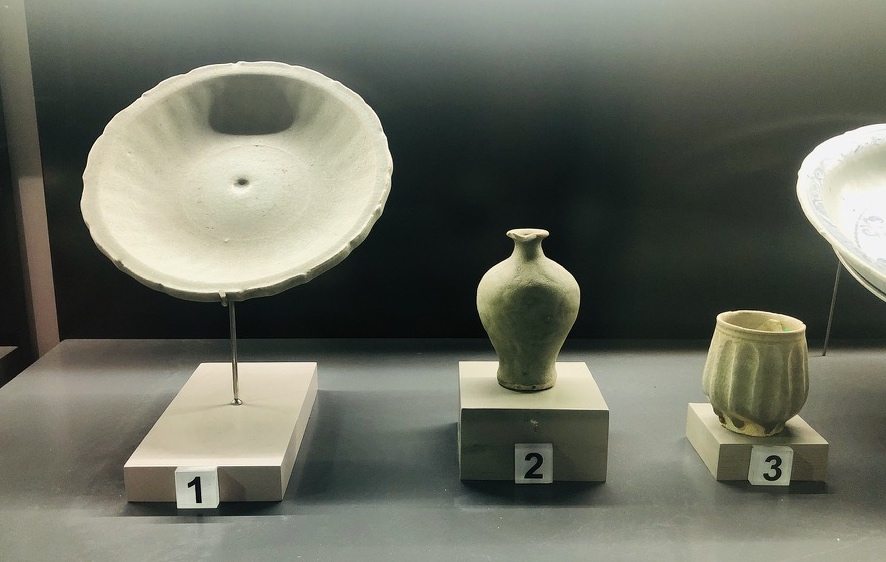 Celadon or greenware from Longquan was much sought after and exported in large quantities to many countries during the Song Dynasty (1127-1279 CE). The celadon pottery made here was famous for its greenish or grayish blue glaze, which has a jade-like resemblance, and the surface was ‘as smooth and lustrous as jade’. Though the clay body was heavy and thick initially, it was perfected by the late Song period. By then, the kilns had succeeded in producing thinner bodies, maintaining its transparency and even incorporated glaze. Other similar tones such as pale green, bean green and plum green were equally popular. During the Song Dynasty, celadon pottery such as dishes, plates, vases, jars, and bowls with this jade-like glaze were very much in demand. Carved lotus, lotus petals, or stylized floral motifs on bowls, and fish and dragon motifs on dishes and plates were favoured and were the prevalent design choices at that time. So favoured were these pieces then, that even Japan and Korea emulated the style and shapes of pottery from Longquan.