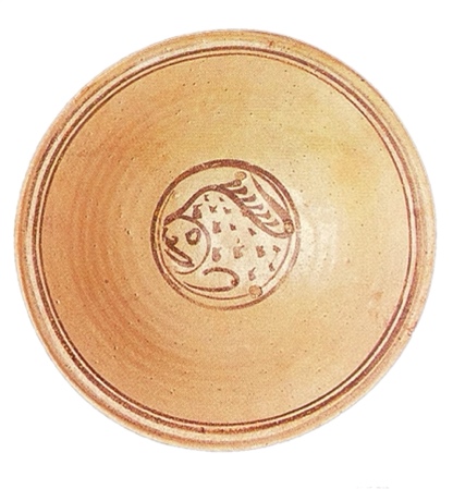 left: Sukhotai underglaze black decorated fish plate; right: Suphanburi storage jar with stamped decoration on the shoulder; both recovered from the Longquan shipwreck. Image credit: Sten Sjostrand