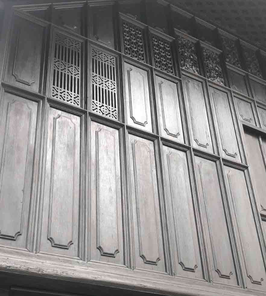 The focus then shifted to the wood panelling of the building: hectagonal pieces known as papan kembung (bloated planks) due to its more ‘bloated’ shape compared to others. Nadge keenly shares the panel’s other unique nickname: Janda berhias (‘decorated divorcée’), given due to its intricate construction. He explained how each panel had its own fitted slot, where nails are not needed due to its custom-made grooves for its mullions. This, too, is a slightly different feature than that of its simpler west coast counterparts.