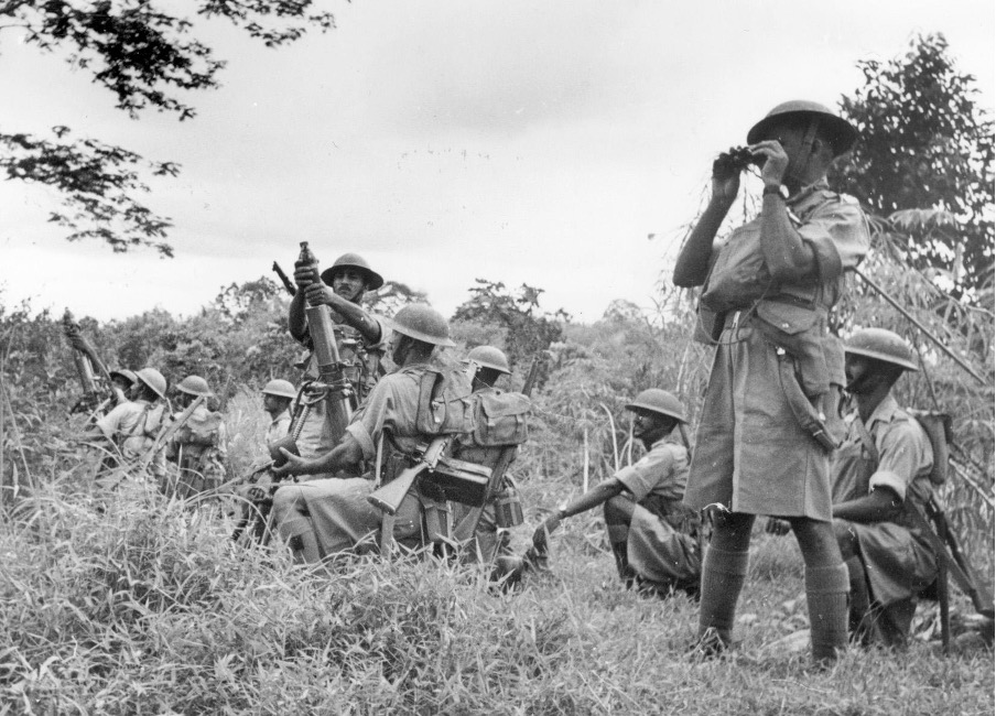 Standing their ground in the dense jungle of Malaya, Indian soldiers fire trench mortars from a tapioca patch at the oncoming Japanese. Image source: https://warfarehistorynetwork.com/article/the-fall-of-malaya-japanese-blitzkrieg-on-singapore/