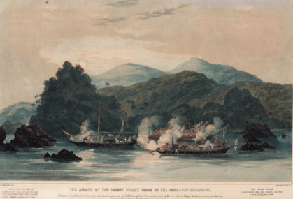 - The attack of two lanun prahus – Public Domain – James Hunt, 1846