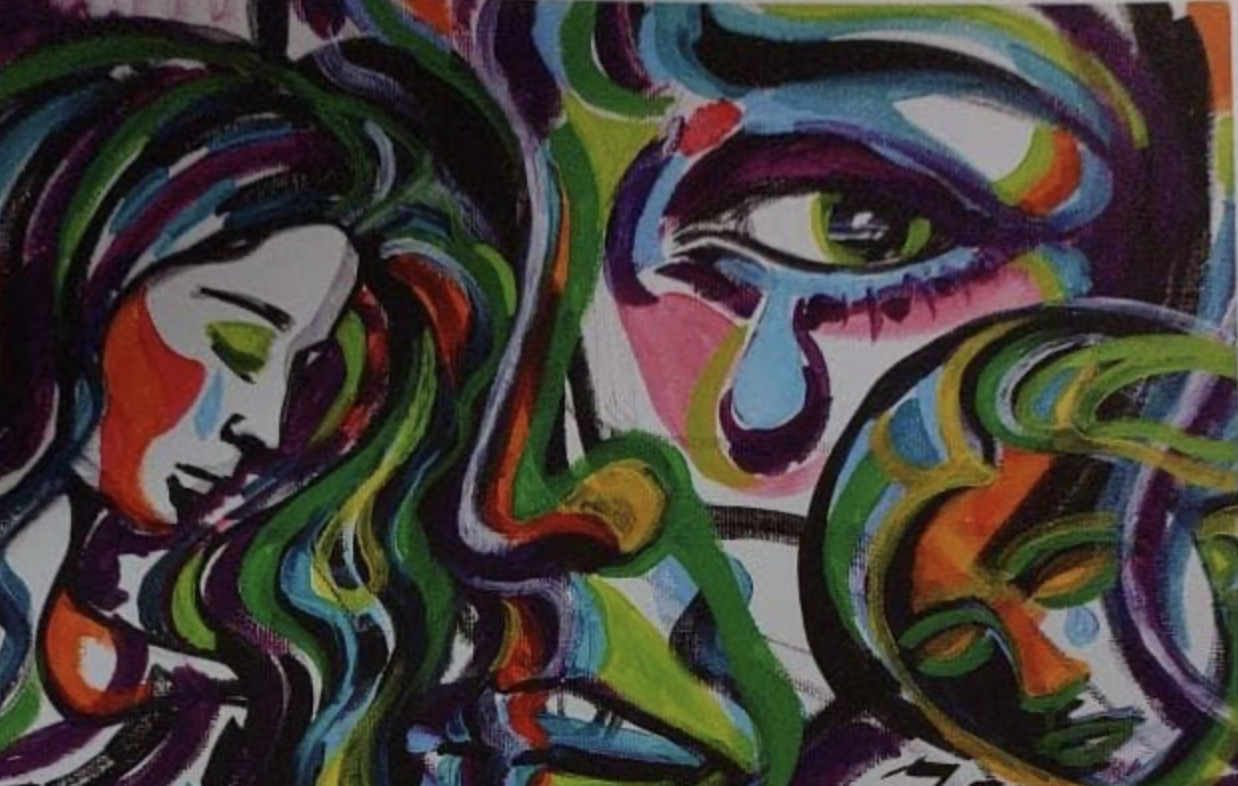Pix 5: An abstract painting of three sad women by Raja Permaisuri Agong.