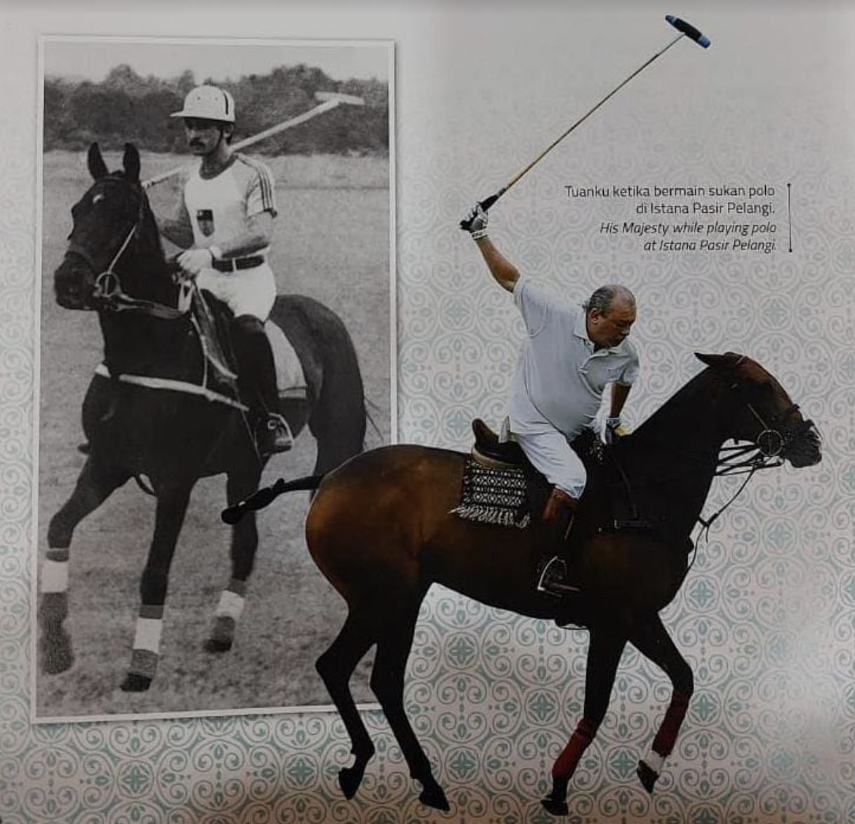 Pix 1: His Majesty playing polo at Istana Pasir Pelangi.