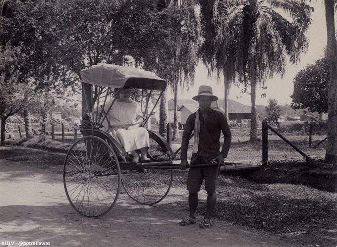 It is uncertain when the rickshaw was first imported into Malaya but by 1912, the rubber-tyre rickshaw was reported to be in use in Kuala Lumpur together with the iron-wheeled type. However, by the mid-1920s only the former was in common use. These operated in what was known as central Kuala Lumpur, which covered Petaling Street, Sultan Street, Central Market and extended around three kilometres outward. This is a flat area, easy for the puller to navigate. Many people lived within the city in those days.