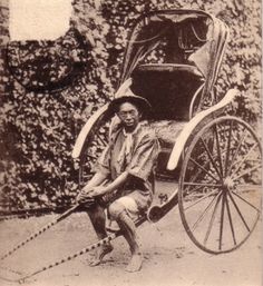 “Chinese coolies toiling in the shafts of jinrickshas occupied by fares sitting inside, and quite unconcerned at the efforts of these human horses, who are often sickly, and always striving to reach the end of their journey as quickly as possible, mopping their faces as they run along, and audibly panting from their exertions.”