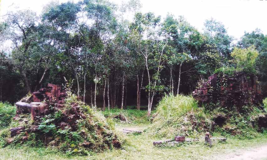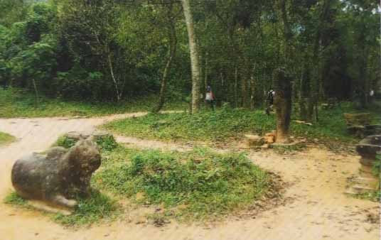 left: Nandi, vehicle of Shiva, faithfully standing guard at the My Son sanctuary; right: lingga and yoni (Hindu symbols of fertility) had not been removed from their original spots. Images: from author’s collection