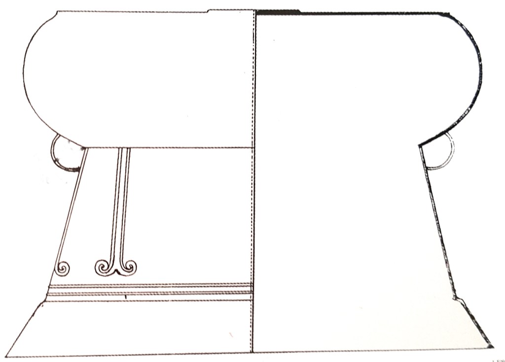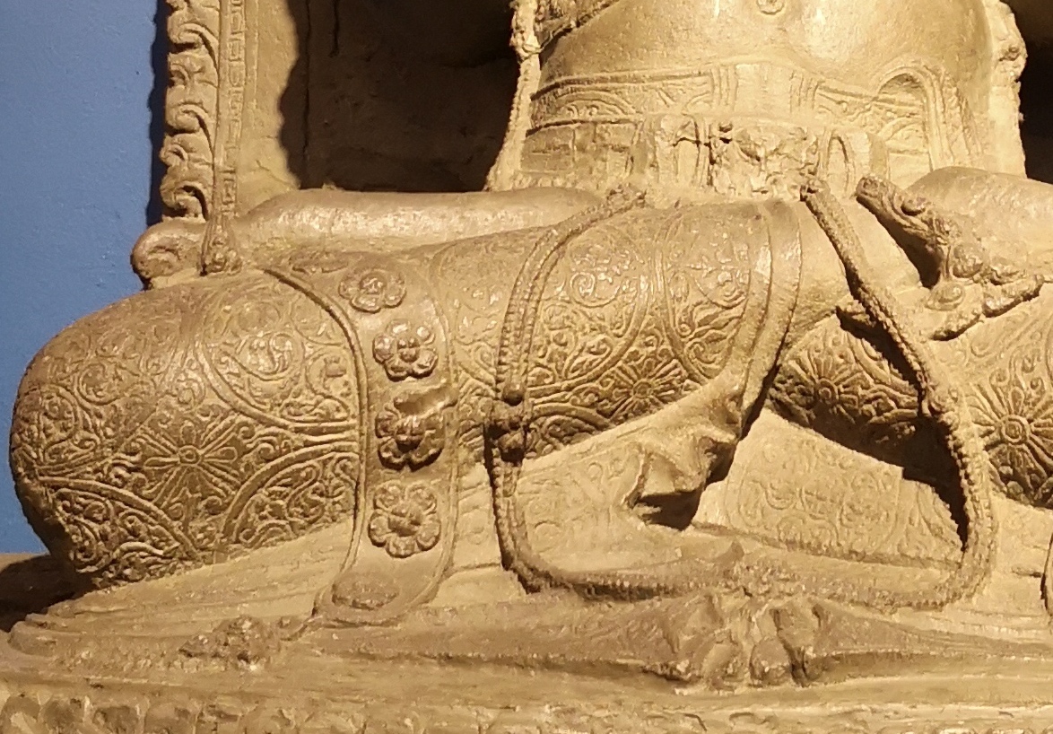 right: In this image of a sacrificial altar, several four-legged animals at the base supporting a few bronze figures closely resembling the large face masks, each holding a ceremonial offering of some sort, are visible. (image from Wikipedia)