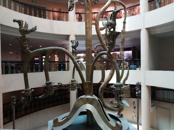 Some of the artefacts are so large that they have to be seen to be appreciated. Standing at five metres, the Sacred Tree of SanXingDui, the most prized relic, gets pride of place in the central lobby of the museum. The spiral feature of the building’s architecture must have been designed for its display. Overseas display of this valued artefact is prohibited.