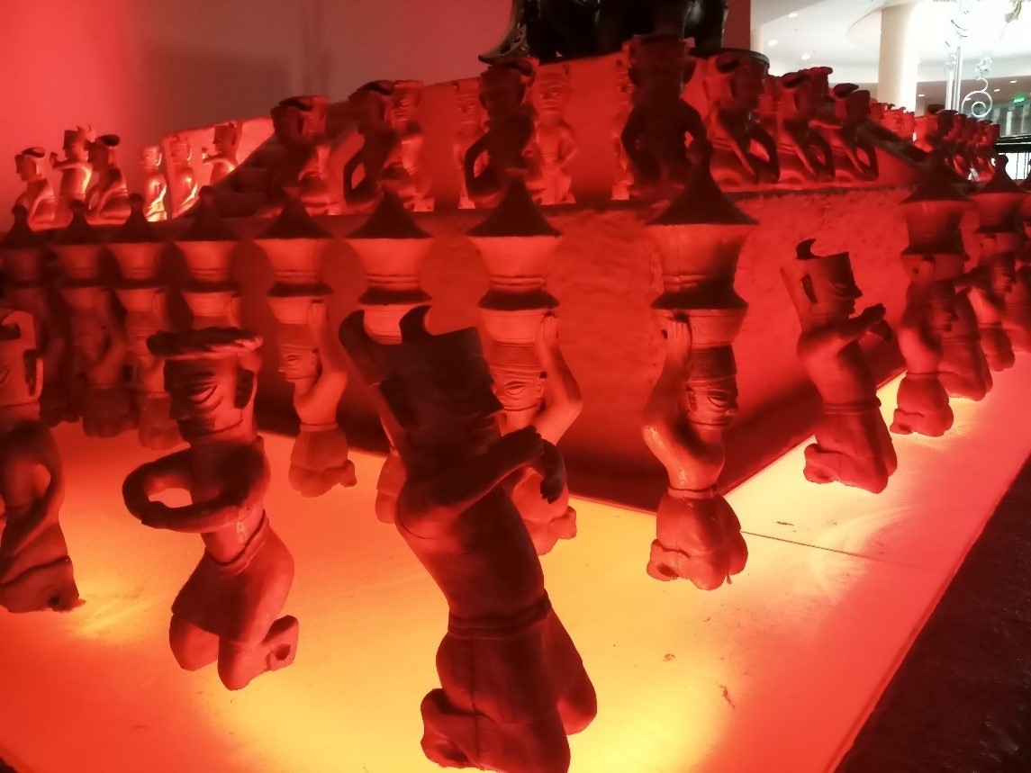 The large exhibition halls, filled with hundreds of artefacts, are dimly lit. It feels surreal to be inside, especially the first hall I entered, being surrounded by case after case of large masks and human heads, but visitors just move on with their audio guides to gaze upon and marvel at the mysteries of this once-forgotten civilisation. If they could talk, what secrets would these strange human heads reveal?