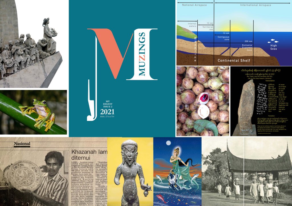 For this issue, our primary focus is on the Seas. In Muzings 2021, you will navigate Sundaland and peek behind Wallace’s Line. You meet the pirates cruising in the area and learn why the Law of the Sea is important in settling territorial disputes. The deep unknown always attracts legends, myths and fables; those found in Muzings 2021 will leave you enthralled. Be fascinated at how the Dutch, instead of rounding the Cape of Good Hope and sailing to India like the Portuguese, braved the Roaring Forties to reach the Sunda Straits. Two charming towns, Beruas and Fraser’s Hill, wait to be explored. Understand two symbols of Malay hospitality – rosewater sprinklers and tepak sirih. Delve into Portuguese shenanigans outside Melaka, a Terengganu Al-Quran, a Malay medicinal manuscript, ancient scripts and the adat perpatih of the Minangkabau. What is the connection between the Swatow bowl exhibited in Gallery B and the maritime Sultanate of Aceh and why are there Persian ceramics at Bujang Valley? These and many other interesting revelations await you in Muzings 2021.