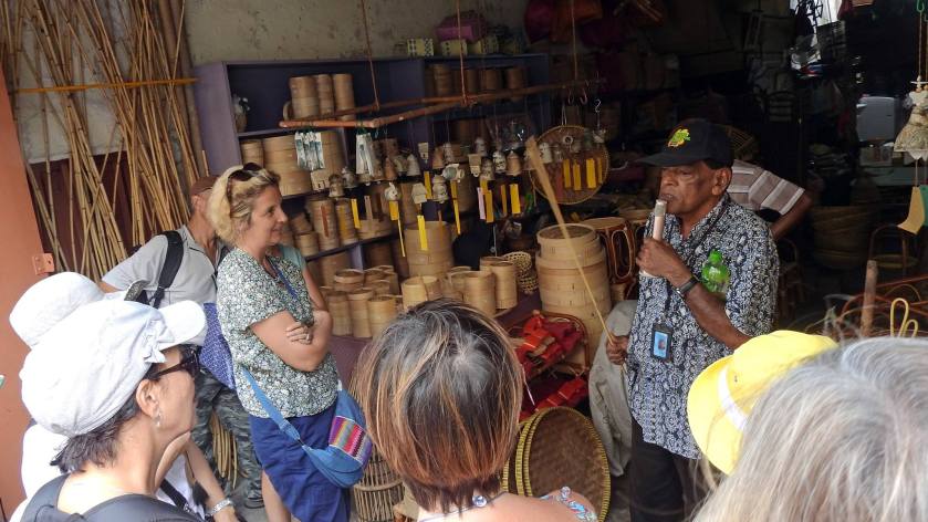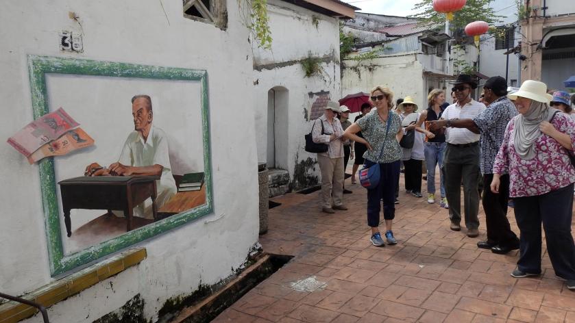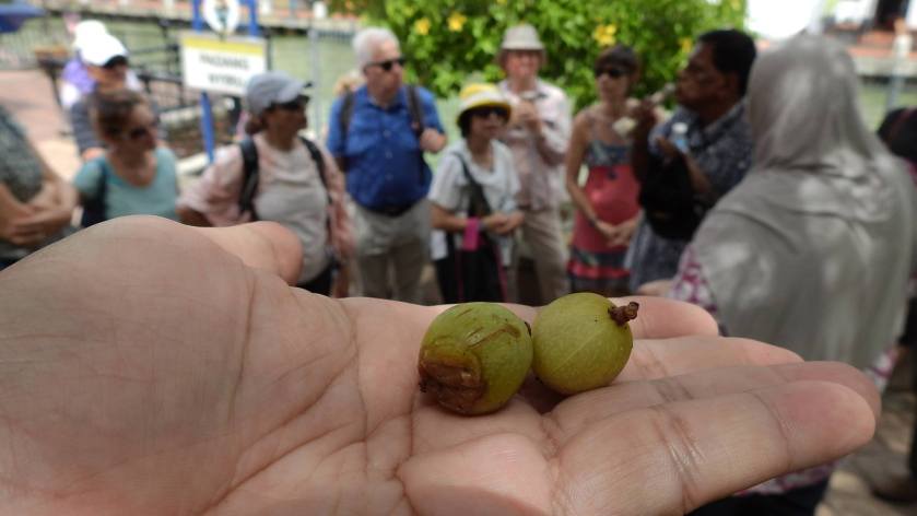 After such a long day and being out in the hot sun, we were ready for our next adventure – lunch at Nyonya 63. The air-conditioned restaurant with its lovely oriental ambience was a welcome and pleasant interlude. Lunch was an absolute delight to our senses – we had chap chay, cincaluk omelette, assam fish, nyonya fried chicken, prawns cooked in prawn gravy, and buah keluak chicken. One of the group’s favourite was the prawns cooked in prawn gravy as the sweetness of the pineapple lent its flavour and mellowed the taste of the curry. Buah keluak chicken, being a Nyonya speciality, is an acquired taste, highly recommended for everyone to try. We ended with the all-time favourite desserts, cendol, and ondeh-ondeh, courtesy of a friend of Annie’s.