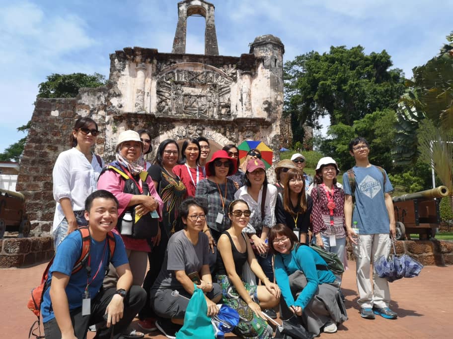 On 27 February 2020, 14 participants from Museum Volunteers Batch 34 (Patricia, Katya, Grazia, Cen, Melissa, and Annie) and Batch 36 (Debbie, Veronika, Fazlin, and I) with our friends (Yvonne, Ryoko, and Melissa’s two children) made a day trip to Melaka. We gathered at the car park of the National Museum at 6:30 am. From there, our chartered van made its way to Melaka. Traffic was smooth and we arrived in Melaka at the Dutch Square at about 9 am where we met up with our guide, Colin Goh. Casper and Marliza (from Batch 36) also joined us during the tour in Melaka, making it a group of sixteen.