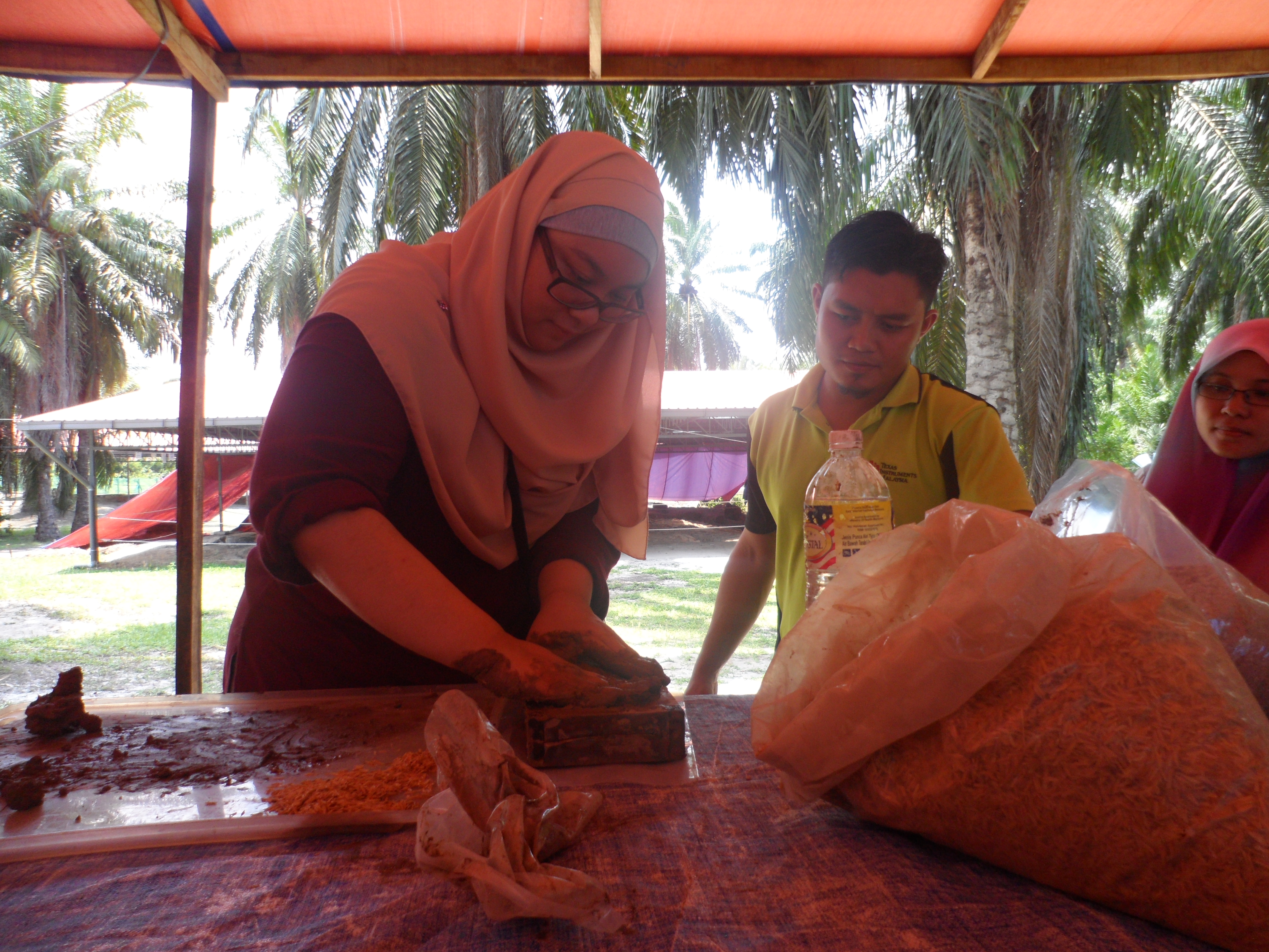 up by only a handful of us. Very much like making bread, clay is the main ingredient utitilised. It is then mixed with sand and paddy husk and kneaded into a dough and placed into the brick mould to be allowed to dry for at least 2 days. It is then baked in open fire of 600 degrees till reddish brown. Voila! there is your completed brick, your own masterpiece which you can display in your home. A point to note is, it will take at least 2 weeks for this process to complete. For that, you will have to make a return trip to Sungai Batu to collect it if you really want to. That’s something for the individual to ponder.