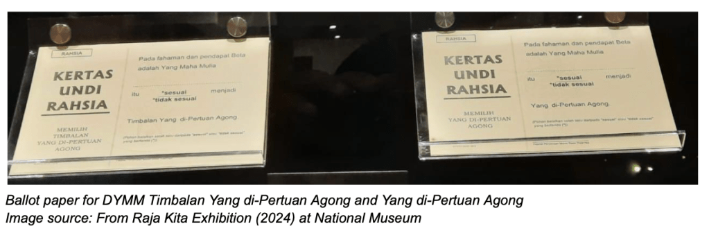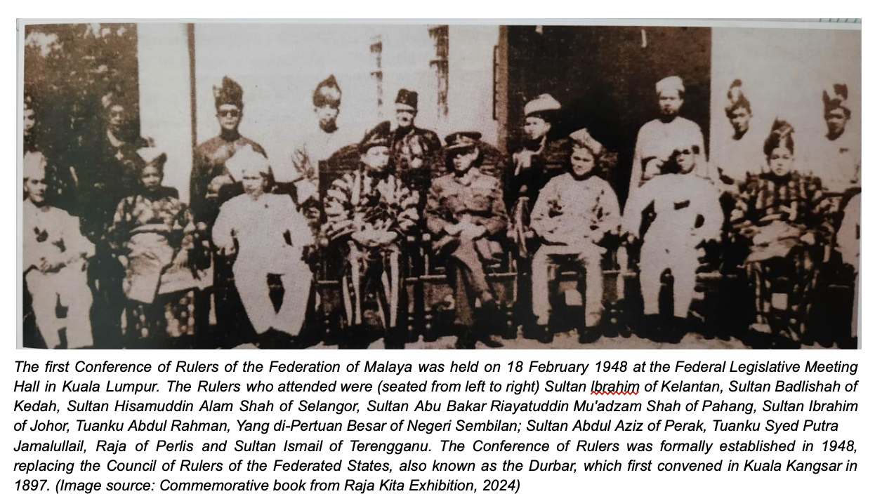 Among the displays was Sultan Abdul Hamid’s baju sikap, an outer garment worn over bajumelayu, adorned with telepuk and featuring five gold buttons, typically a baju sikap has only one button. This piece was worn during King George V’s installation ceremony in 1911. Another was a baju sikap decorated with telepuk, belonging to Sultan Abdul Samad, the fourth Sultan of Selangor. Estimated to be 170 years old, this garment was also featured in a photo of his grandchild wearing it. Sultan Iskandar of Perak was also known to wear a headdress made of telepuk, while the late Sultan Hishamuddin of Selangor donned a baju layang, a cape-like garment that forms part of Selangor’s royal dress code.