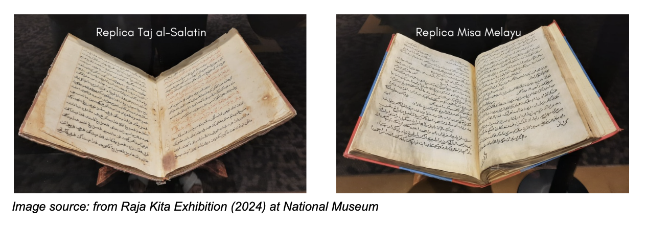 The exhibits also included a fascinating reference to The Malays: A Cultural History by R.O. Winstedt, which documented telepuk production in Pahang and Pattani. The book describes the process as practised in these regions, as well as in Selangor, noting its similarities to a technique from the state of Punjab, India. (excerpt from book: Patani, Pahang and Selangor produce cloths (kain telepuk) guided by a technique practised also in the Punjab. Cotton with a small pattern on a dark green or dark blue ground is polished (with cowry shells), stamped with armed wooden blocks that have been smeared with gum, and then covered with gold leaf that adheres to the gummy pattern.)