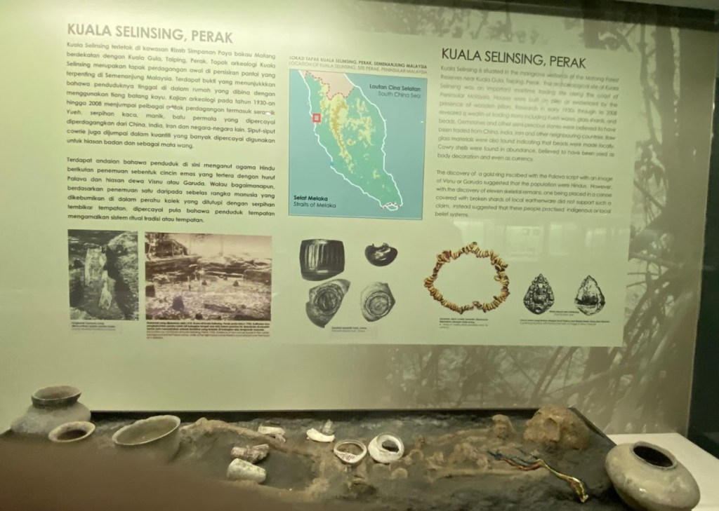 -동선 무덤 : 슬랑오의 깜풍 숭가이 랑(Kampung Sungai Lang)에서 발견된 동선 무덤은 말레이시아의 청동기 시대(기원전 6세기~기원후2세기)에 만들어졌습니다. 베트남 북부 동선에서 유래된 2개의 동선 북이 토기, 유리, 비즈 같은 부장품들 사이에서 발견되었습니다. 이런 형태의 매장은 말레이시아에서만 발견된 것입니다. 무덤을 덮고 있는 나무 판자의 재질이 배를 만들 때 사용하는 나무와 비슷한 것을 볼 때, 보트 매장(실제 배나 배모양 관에 시신을 안치하는 방식)이었을 수도 있습니다.