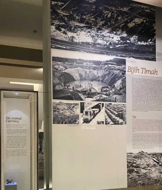 주석으로 된 동물 화폐는 말레이 반도에서 사용된 최초의 화폐였습니다. 15세기부터 왕실이 왕족에게 주는 선물로, 채굴을 막 시작한 광산에서 주술적 의식을 치를 때 사용했을 것으로 추정됩니다. 나중에는 페락, 슬랑오, 느그리슴빌란에서 화폐의 형태로 발전되어 사용되었습니다. 주석 동물 화폐는 단단한 주석 덩어리로 만들며, 형태로는 거북이, 메뚜기, 수탉, 악어, 코끼리 모양이 있었습니다. 표준화된 화폐가 없던 시기에 교환 매체로써, 광산 주변의 지역 사회와 무역상인들의 거래를 촉진시키는 역할을 했습니다.