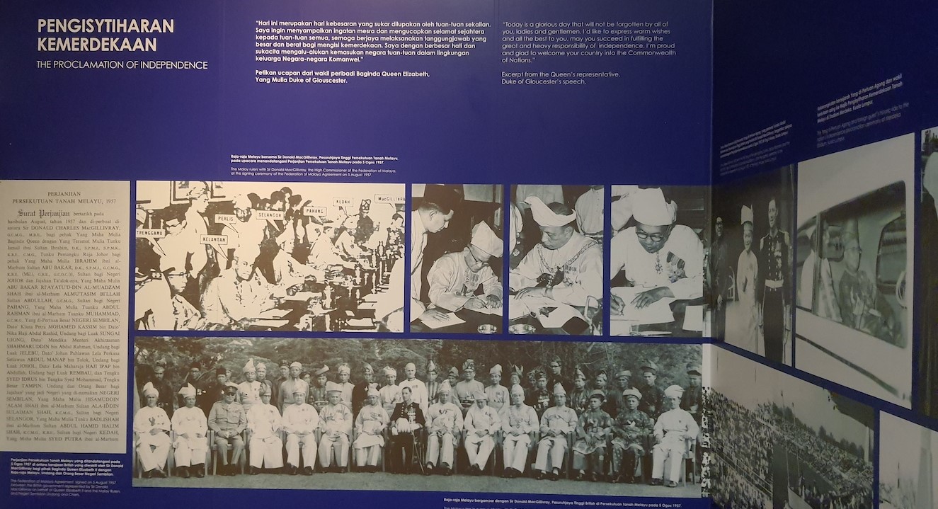 말라야의 독립이 선포되는 역사적 행사에 참석한 말레이 통치자들은 모두 전통 예복을 입었습니다. 최고급 전통 직물로 만든 기품 있는 예복을 입고, 텡콜록(tengkolok_전통 머리장식)을 쓴 모습은 많은 사람들의 눈길을 끌었습니다.