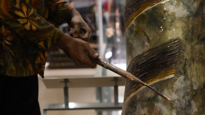 박물관의 정문으로 들어오면 높은 개방형 로비가 관람객을 맞이합니다. 박물관 앞과 뒤쪽 벽면에 세로로 길게 나 있는 투각된 나무 패널 창문은 실내로 충분한 빛이 쏟아져 들어오게 합니다.