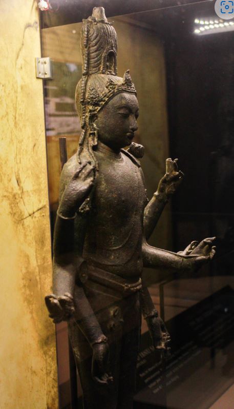 흥미롭게도 이 청동상은 힌두교 파괴의 신인 시바(Shiva)와 관련된 특징들을 가지고 있어서 매우 독특합니다. 그 특징들로는 높은 왕관, 물병, 허리에 두른 호랑이 가죽을 들 수 있습니다. 페락 주의 비도르(Bidor)에서 발견되었으며, 무게는 63Kg, 높이는 93cm입니다.