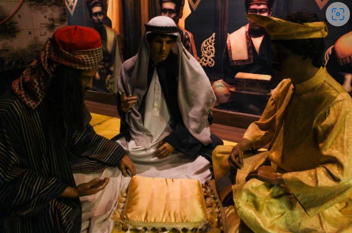 여러분 앞에 있는 디오라마는 이슬람으로 개종하는 장면을 묘사하고 있습니다. 이미 번성하고 있는 경제에 이슬람화가 더해지면서, 믈라카는 무슬림 상인들에게 더욱 매력적인 곳이 되었습니다.