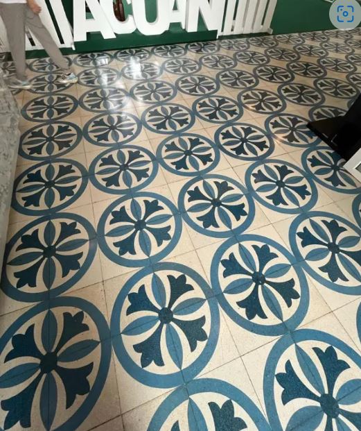 뒤쪽 벽에 있는 장엄한 계단은 둘로 갈라져 있는데, 양쪽 모두 위층의 갤러리로 연결됩니다. 로비의 바닥에는 파란색과 흰색의 기하학적 무늬의 타일이 깔려 있습니다. 이 타일은 박물관이 개관하던 1963년에 파키스탄이 기증한 것으로, 60년이 지난 지금까지도 여전히 인상적입니다.